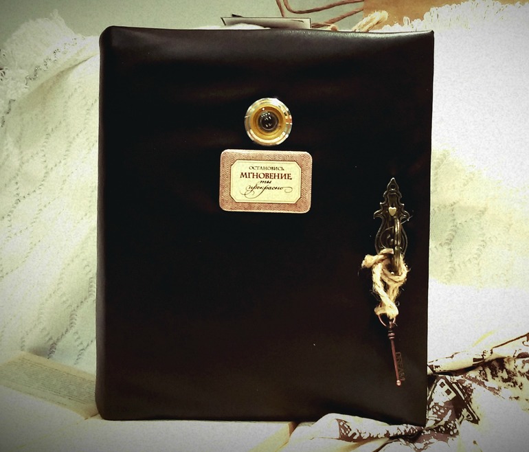 А покажу сегодня альбом, очень интересный и необычный для меня, девушка попросила сделать в подарок своему любимому мужчине на 14 февраля, их историю знакомства и любви. Очень интересный. Формат 21на25 на 16 стр, без расскладушечек, сделали большие фото -коллажи, имхо получилось стильно. Обложка задумана как дверь в наш мир любви)))