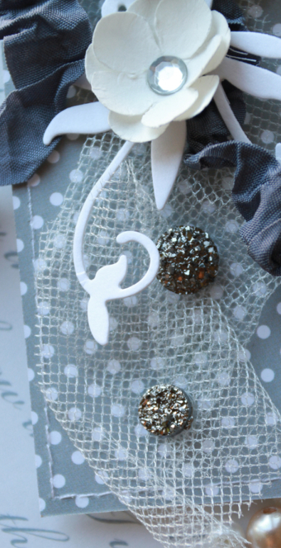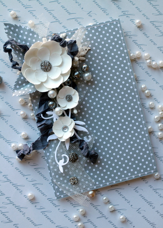 Цветочки я сделала из молочного кардстока, серединка - декоративные страза от Prima