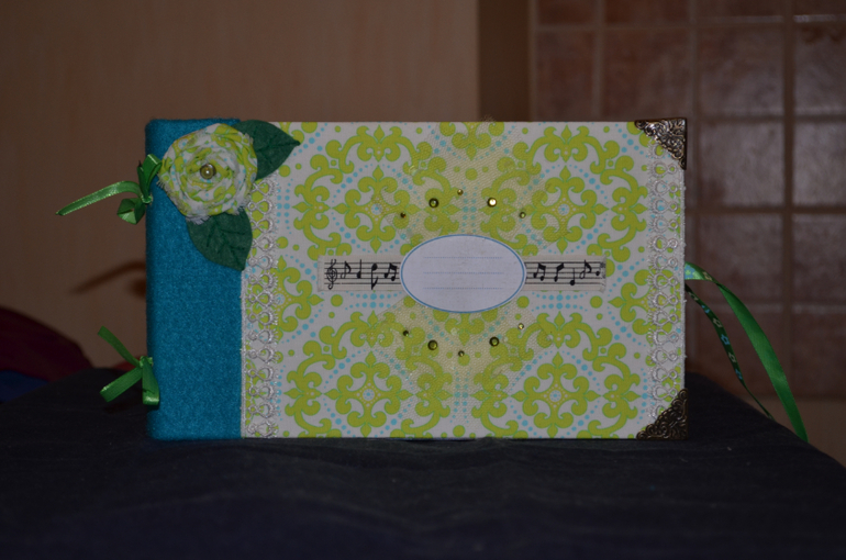 Обложку дешевят: тесьма кружевная, цветок (особенно листики), на корешке ленточки и в центре стразы. На мой взгляд, если все это убрать — то было бы лучше. Но это чисто мое мнение) Обложку моего нового альбома сейчас подружка тоже раскритиковала, я его еще здесь не выкладывала, завтра выложу. Но мне самой нравится) Может через некоторое время я улыбнусь, глядя на нее)
