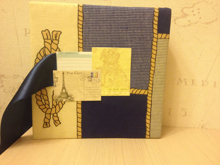 Внутри очень понравилось, столько деталек интересных (только цветочек, на мой взгляд, лишний). Но вот обложка подкачала..Ткань натянута неравномерно, и бумажные украшения...было бы краше их прошить.