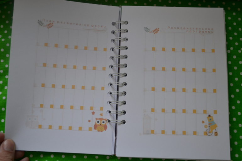 сделался у меня такой полезный блокнот- для записси развивающих занятий с малышом)))Ну и конечно с совами все