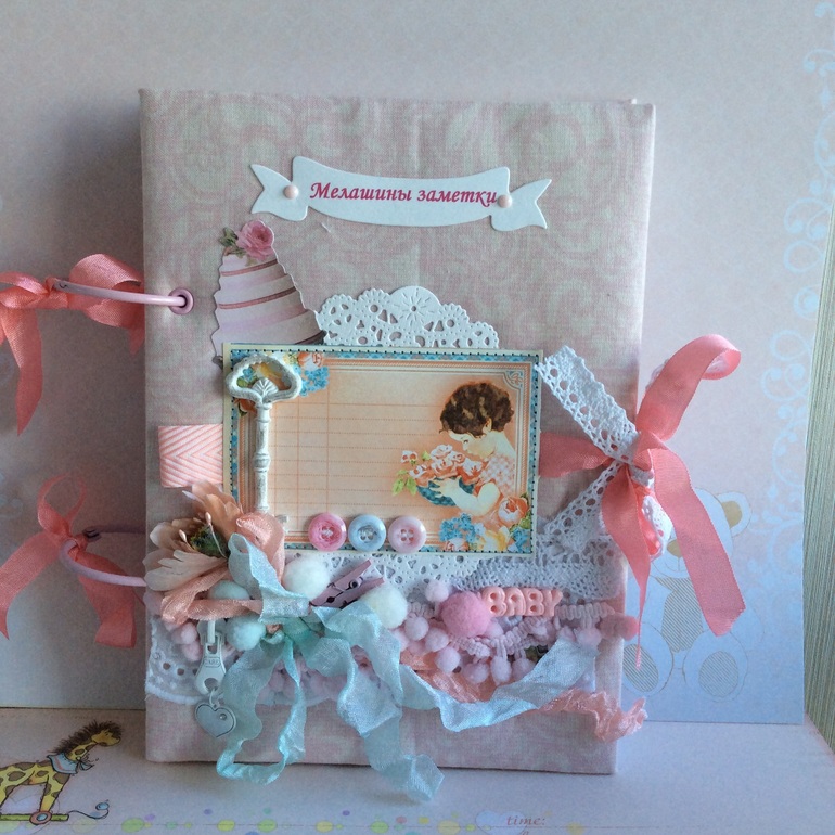 Блокнотыпривет мои дорогие!!! Покажу вам сегодня еще одну работу, вроде бы простенькую, но особенную. Особенную для меня, потому что она для моего любимого и родного человечка!!!! Для моей доченьки!!!! Так долго я его делала, казалось бы все просто, ан нет- то ткань не подходит, то украшения не те, то бумажку подбирала, вообще хотела чтоб все было идеально! Ну и наконец он готов и теперь я с удовольствием буду записывать в него самые важные заметки про мою красотку!!!! Извиняюсь за фото, не очень они, т. К. Делала в торопях, потому что собственно хозяйка блокнота сегодня отказалась спать днем)))))