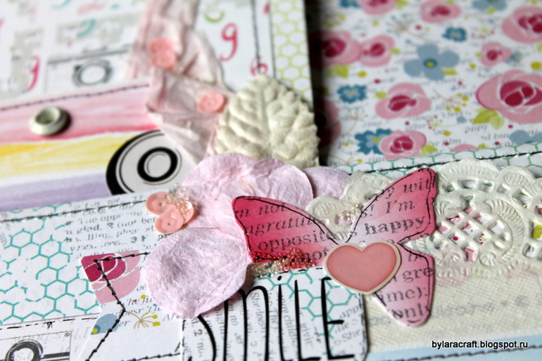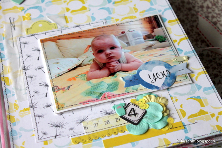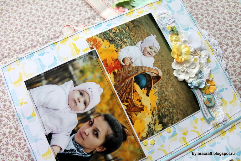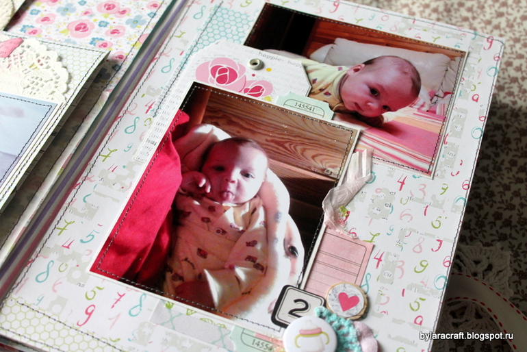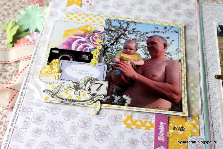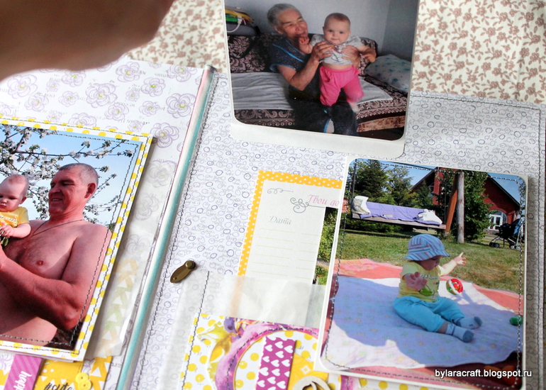 Здесьпод фото раскладушка и потайная страница с дня рождения Софии. Фотографии с дня рождения никак не вписывались в общую картинку, и я решила их спрятать.