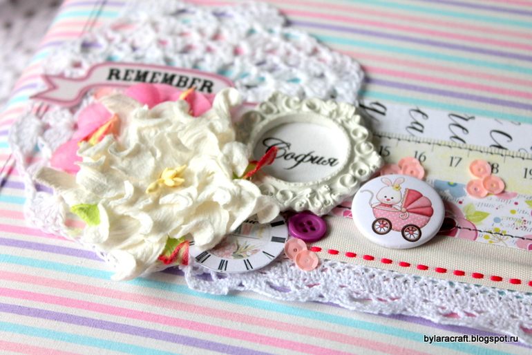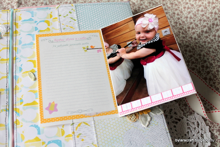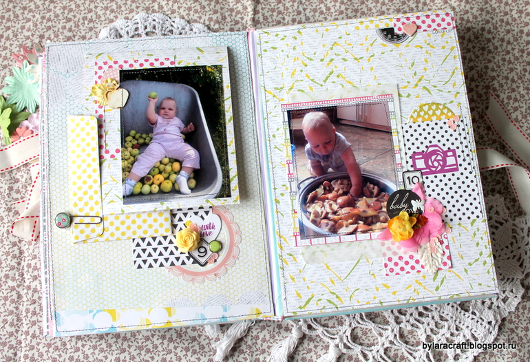 Еще очень очень хочу показать альбом для девочки! Сделан из бумаги и украшений Lemon Oul. Ой, девчат, я просто влюблена в их бумагу! И альбомчики такие классные из нее получаются! У меня получился вот такой яркий, позитивный альбом для девочки до 1 годика!