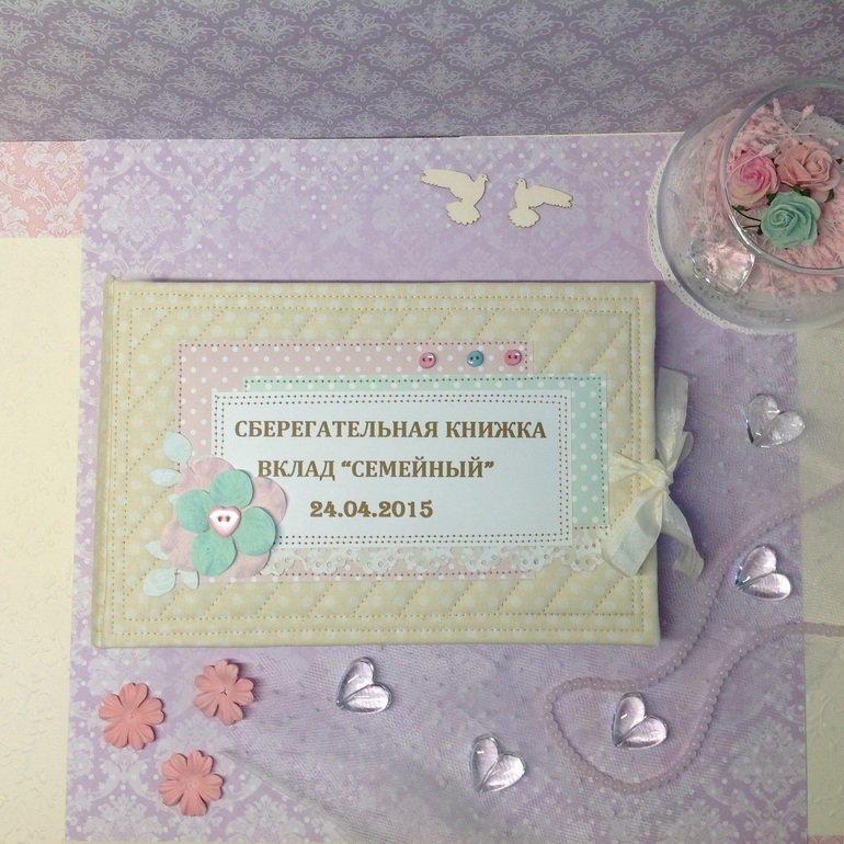 Книги пожеланий, чековые книжки, книжки желаний, кулинарные книгиВсем привет! Хочу показать вам свою новую работу- свадебная сберкнижка, вот что у меня получилось. Формат 14х21 см, 12страниц, пофантазировала немного с обложкой. Светлая ткань смотрелась немного скучно, а так очень даже интересно, на мой взгляд, получилось:)