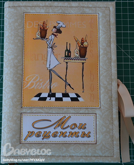 В кулинарной книги 200 цветных листов, 5 разделителей, мягенькая обложечка из хлопка, завязывается на ленточку