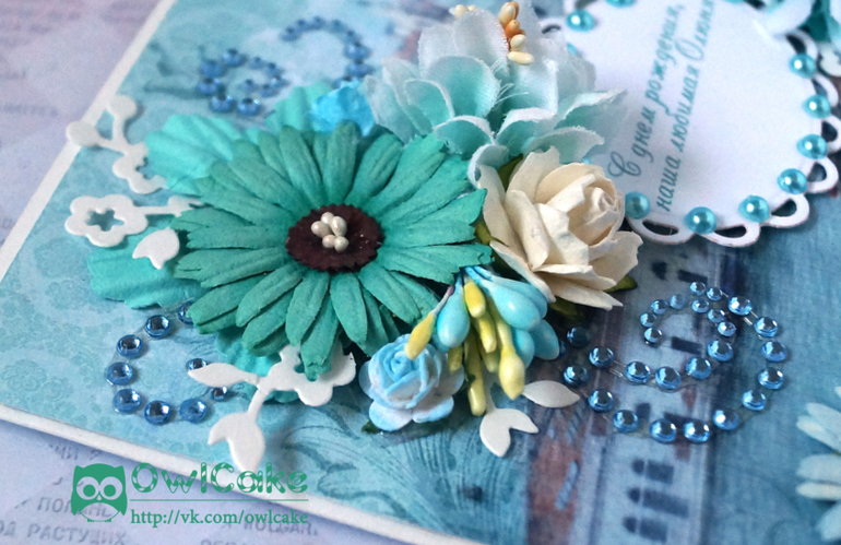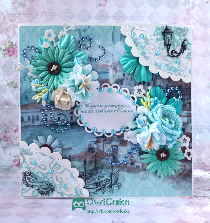 Открытка выполнена в стильных оттенках самого модного цвета тиффани.