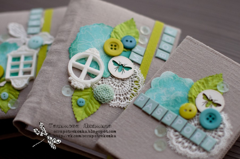 БлокнотыВот наконец-то руки начинают доходить и до себя. Сделала такой стильный комплект: блокнот, обложка на паспорт и дисконтница.