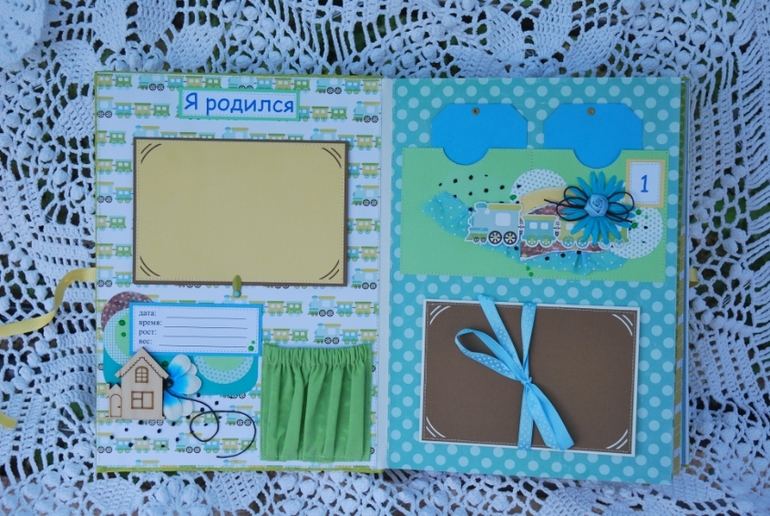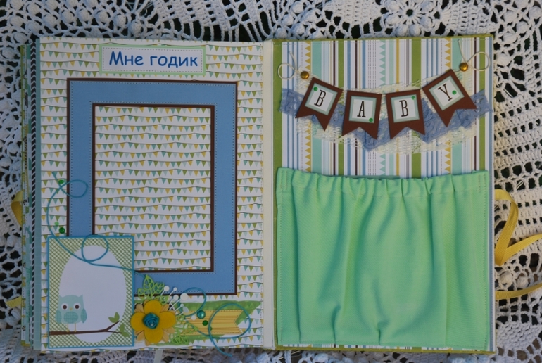 Альбомы Детскиепривет всем!!! на курсах Кати Крюковой сделался вот такой альбом.Альбом для мальчика,бумага набор Echo Park Bundle of Joy,размер по обложке 21,5*30, 6 разворотов,2 тканевых кармана для бирки, карточек роста и достижений или дополнительных фото,вмещает 67 фото 10*15 и меньшего размера,можно больше,тк есть много кармашков для тегов