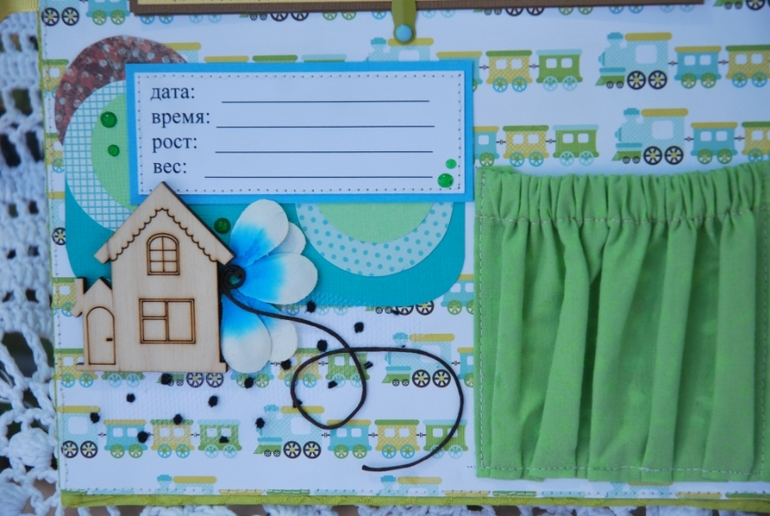 тканевый вместительный карман для дополнительных фото и карточек развития