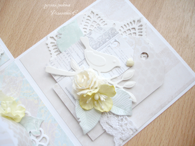 Хотелось нежной красоты, поэтому все таки "зарезала" наборчик от скрапберис, хранила его для альбома. Размер 10х10х10, заказчица доверилась мне, поэтому все на мой вкус!