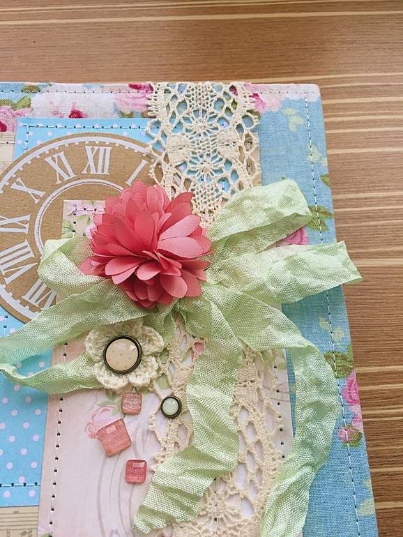 Это был мой первый опыт в изготовлении обложки и общения со швейной машинкой))) С машинкой мы так и не подружились до конца, она люфтила слегла, я так и не смогла красиво спрятать ниточки под декором. Ну, все приходит с опытом, наверное)
