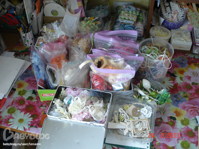 рабочее место-просто класс!!! у меня все тож по коробочкам и пакетикам,но своего рабочего места нет,все эти запасы сложены в огромные коробочки,и стоят на полу и стульях в спальне и когда я сажусь работать,то таскаю всю эту тяжесть из спальни в кухню или в зал,а потом-обратно а по цветам сортировать я даже как-то и не думала,отличная идея)))