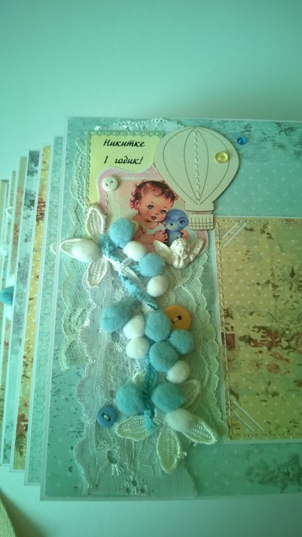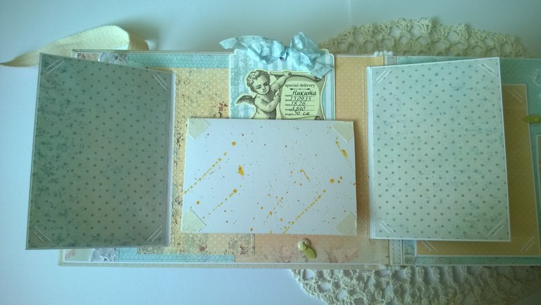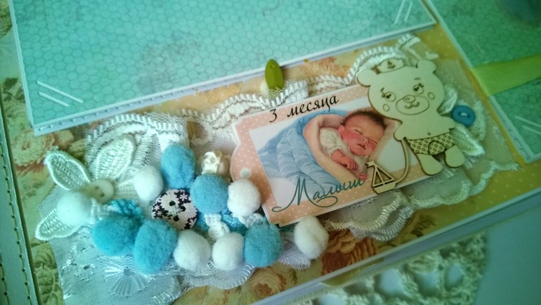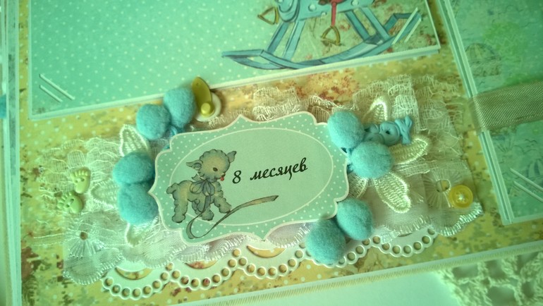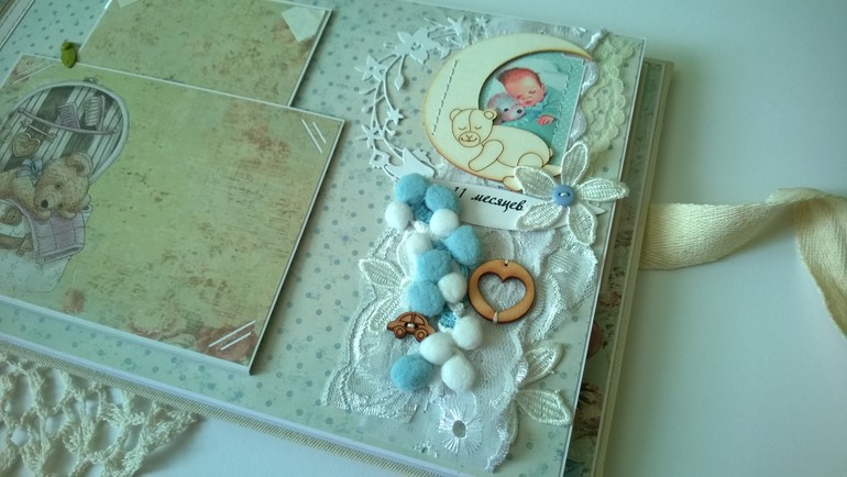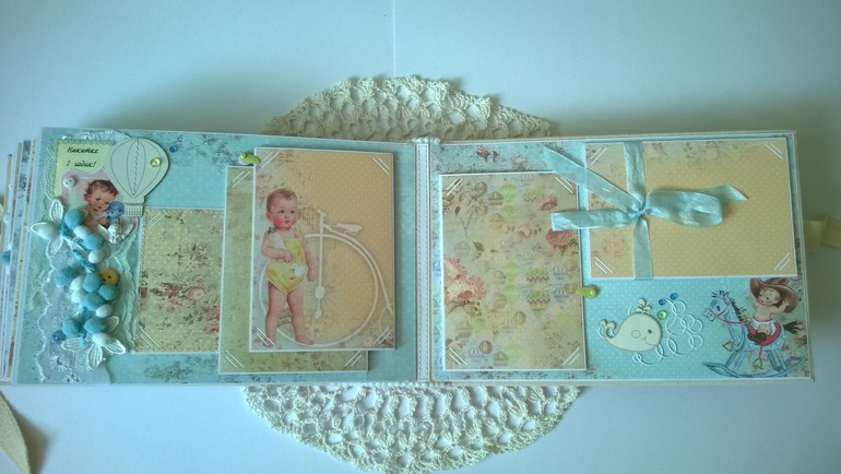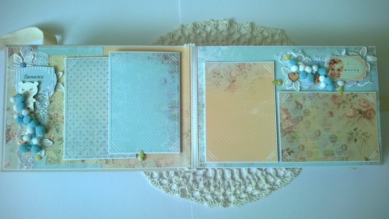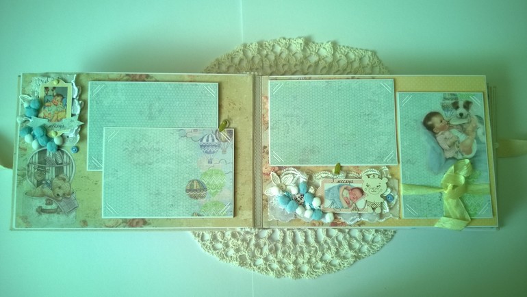 Бывшая коллега заказала альбом первого года жизни для сыночка, который родился месяц назад. Это ее первенец, поэтому как и большинство мам она захотела нежный альбом. Вместе выбрали этот набор. Я сама хотела с ним поработать, вот и выпал случай.