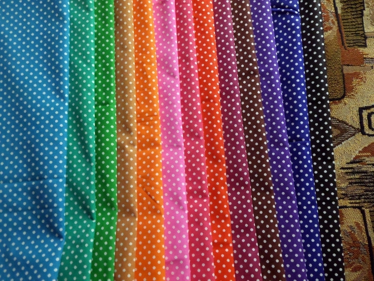 Бязь в горошек 1м ширина 1,5 м цена 250 р .отрез ,а 50*50см по 70 рублей