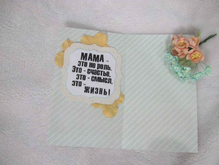 Результатом осталась довольна, надеюсь и вам понравилась открыточка, кстати, внутри также использовала надпись о маме