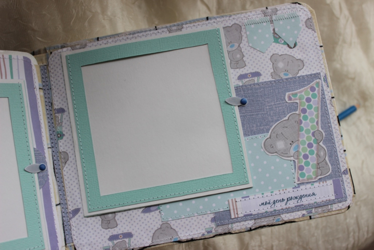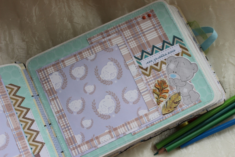 Вдохновлялась шикарным альбомом Светлана про медвежонка. "Украла" ее круглые уголочки и вариант переплета..