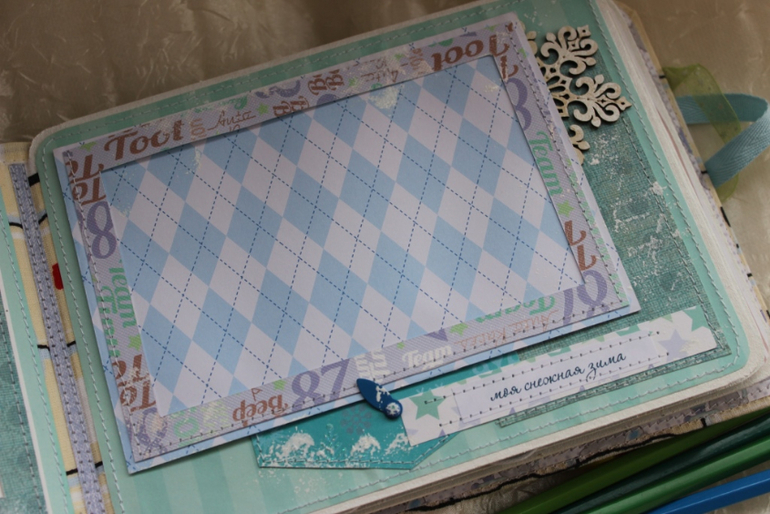 А мне очень понравился альбом. Аккуратный, ровная строчка, хорошие композиции, приятное сочетание цветов, бумага с джинсовым принятом супер. Если покритиковать, то бросается в глаза обложка, а точнее ткань, она не очень подходит по цвету.( красные квадраты смущают) если бы была джинсовая ткань- огонь!!!! И в разворотах, где вы добавили декор по мвременам года, задумка конечно понятна, но картинки яркие и выбиваются по цветовой гамме. К примеру заменить на чипборд по теме времён года. Уж простите, надеюсь ничем не обидела.