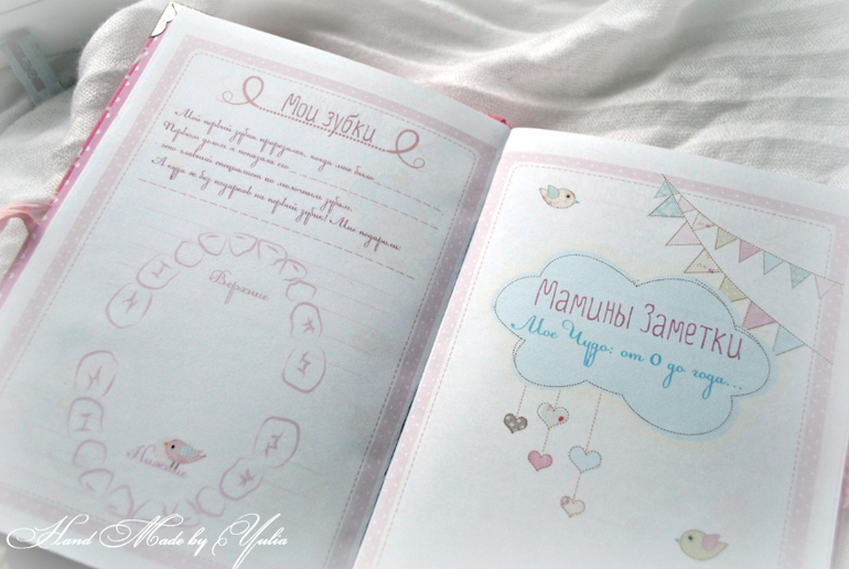 В этот блокнот можно записывать о первом годе жизни малышки, график роста и веса, о том, как прорезывались зубки и т.д. Станет отличным подарком молодой маме и будет очень долго хранить самые важные воспоминания) Цена 1000р+почта. Отправляю по России