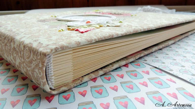 Описывать альбом совсем нет сил. Простите меня, но все силы уходят на альбом первого года жизни в тканевом переплете. Тканевый переплет делаю первый раз и без МК, поэтому все идет долго и не без ошибок, часто приходится переделывать. Все соки уже с меня этот альбом выжал! Зато уже вырисовывается красота!!!