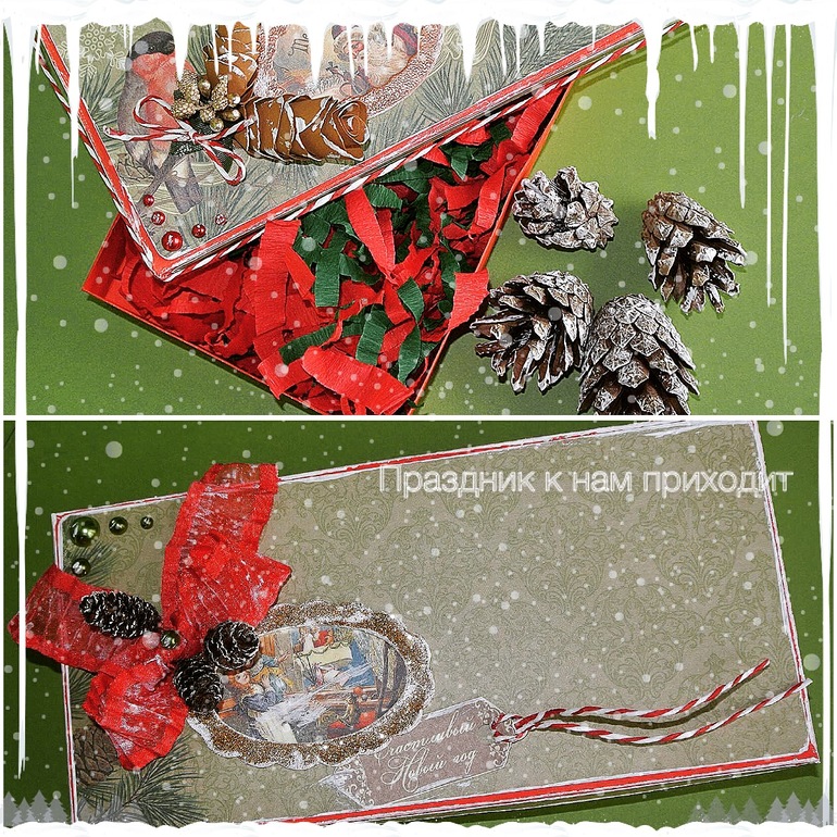 Всем привет) У меня тоже началась подготовка к Новому Году. Подарки уже были давно приготовлены, а вот коробочки создавались под них уже. Отсюда такая вытянутая форма)))