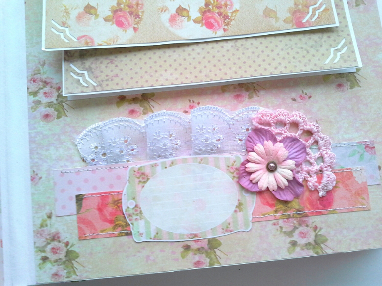Альбом для малышки. Нежный и кружевной) Размер 20х25 см, 7 разворотов, вмещает 49 фото 10х15 см и 10 фото 9 х13. Обложка мягкая из 100 % хлопка.
