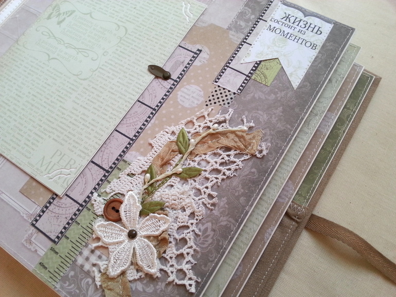 Размер страниц в альбоме 23*23 см, бумага Photo Archive от Scrapberry's, 5 разворотов, на обложке лен.