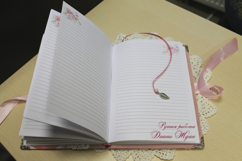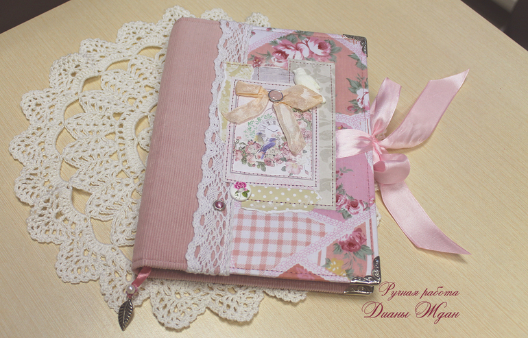 Сегодня покажу вам только один блокнот, их было три, но сфотографировался только этот. Формат А5, 90 листов, блок с нуля, каптал сплетен вручную. А салфетка под блокнотом -моя первая, я сделала это!!!