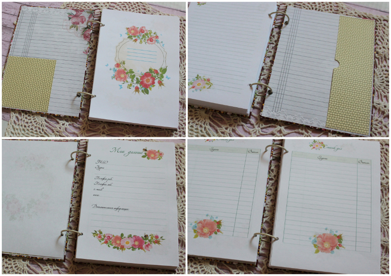 Мягкая обложка, внутри много цветных дизайнерских страниц для записей, планы на месяц, список дел, личные данные.НА обоих форзацах карманы для хранения какой-то важной информации.Крепление на кольцах, что позволяет самостоятельно добавлять/переставлять листы, крепить в блокнот какие-то свои необходимые данные/заметки или фото.