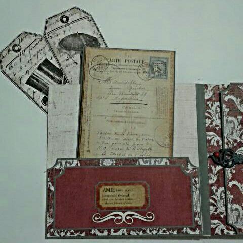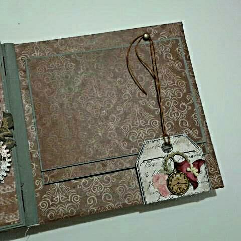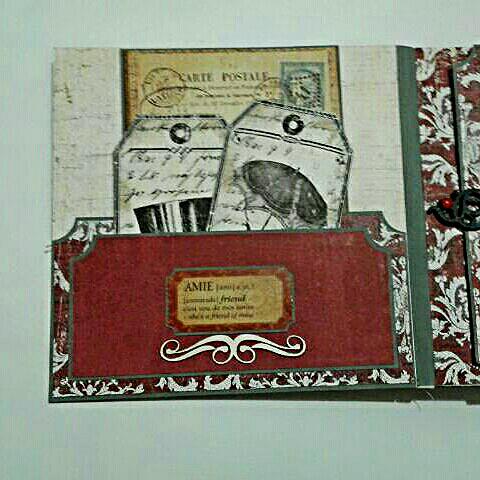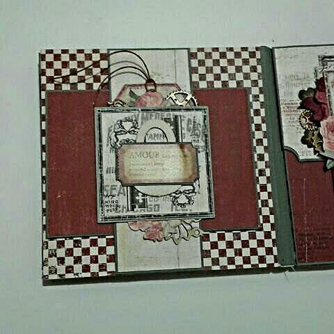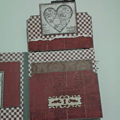 Набор интересный), очень понравилось цветовое сочетание красного с черным, а открыв его, удивилась обнаружив там листы с карточками в стиле стимпанк, было неожиданно ) Альбом 15/15, (очень мне нравится мини формат) на три разворота.