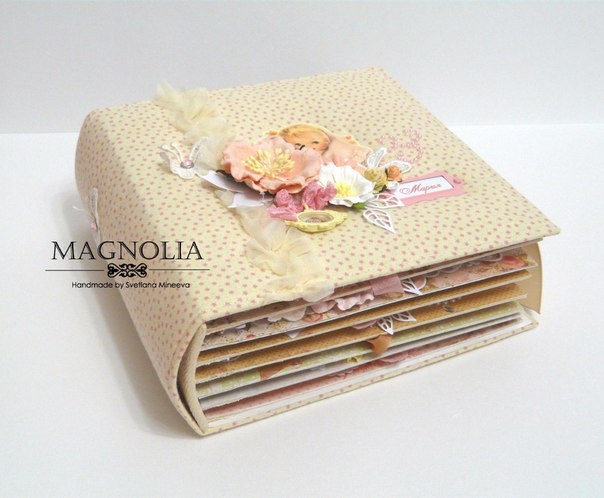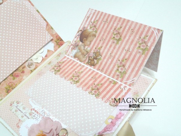 В этом посте покажу альбомчик для девочки из бумаги Карамель. Еще попозже, а может и сегодня, выложу такой же, но для мальчика (из бумаги скрапмира Корица). Оба альбома из одного заказа для братика и сестрички