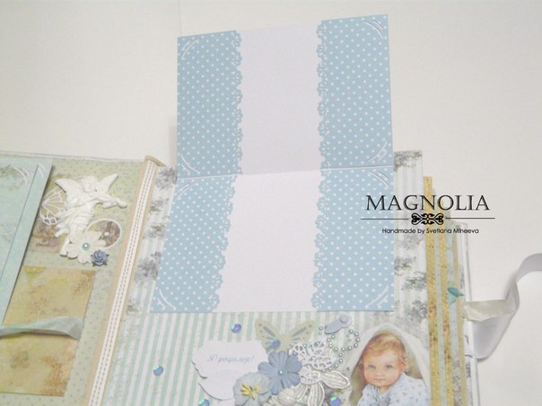 3 разворот, для тематических фото первого года жизни и с первого дня рождения, всего вмещает 10 фото 10*15 см и 4 фото 10*7,5 см