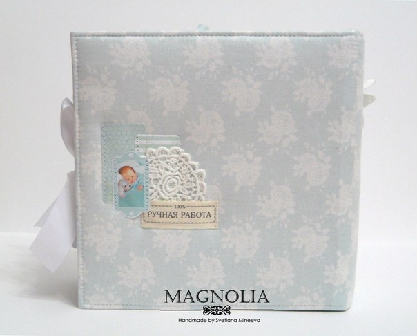 Альбомчик из бумаги Скрапмир "Корица", формат 21*21 см, тканевый прошитый переплет по МК Светланы Ковтун. Обложка мягкая тканевая (натру.хлопок), состоит из 7 разворотов (14 страниц), вмещает 69 фото 10*15 см и 22 фото 10*7,5 см (оформлены в виде тегов)