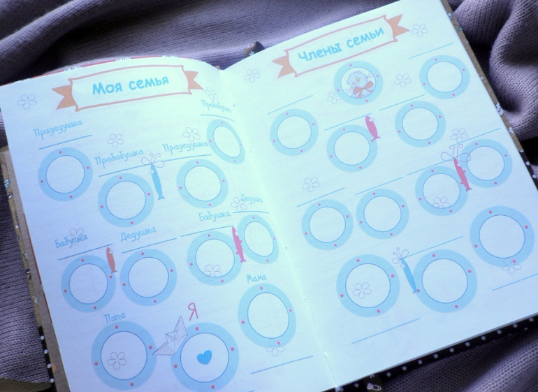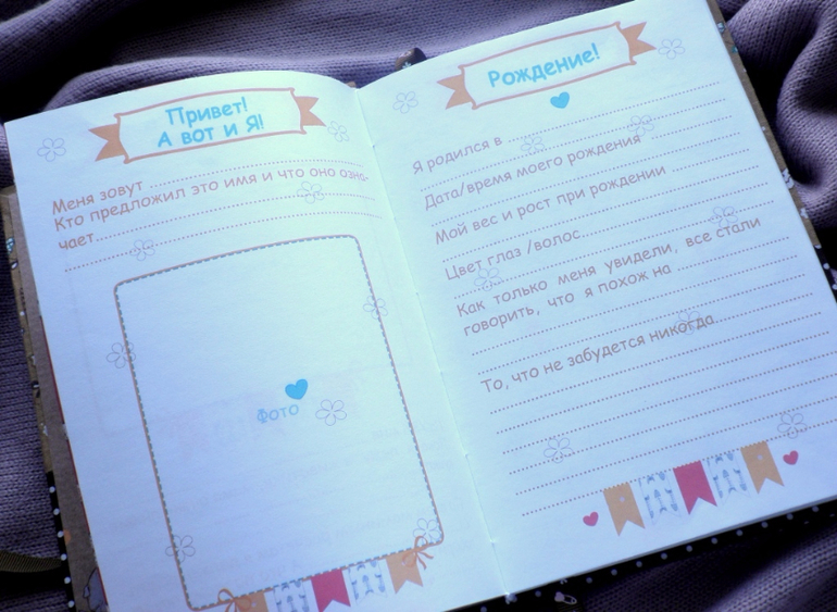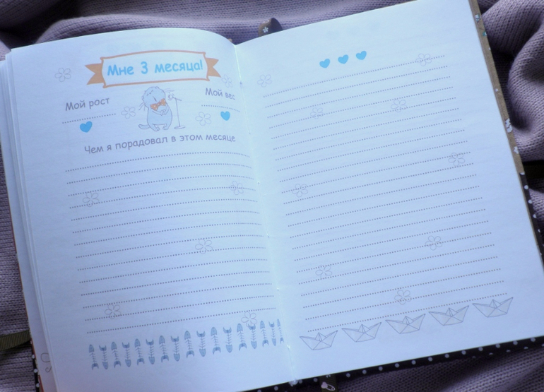 Весь декор на обложке плоский, не помешает делать записи и самых дорогих моментах из жизни малыша.