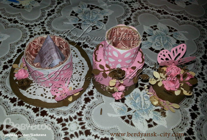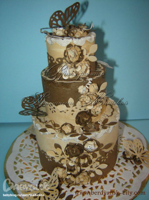 Это я делала для мамочки на 8 марта, открытка-торт, из 3-х коробочек: