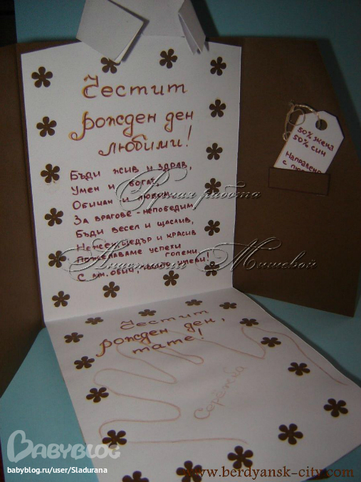 Это моя самая первая открыточка для мамочки на День рождение, еще даже с текстом от руки, мама любит, чтоб с моими "закорлючками", а не холодный принтер.