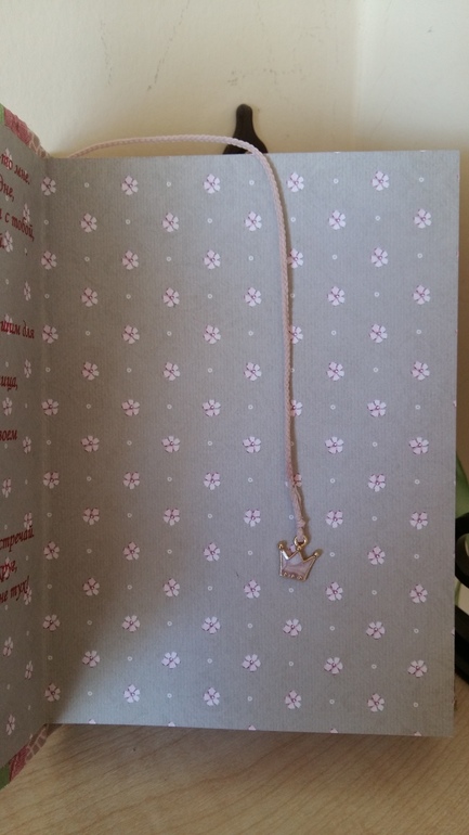 На заказ для девочки 11 лет сшит вот такой блокнотик размера А6. На первом форзаце по просьбе заказчика напечатано послание.