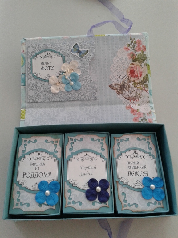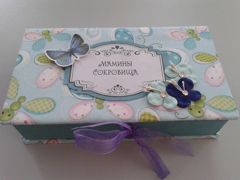 Думаю когда детки подрастут - тоже оценят, в такой необычной коробочке - только настоящие сокровища, как милы и важны они для мамы. Все очень гармонично. Единственное сомнение - цвет и фактура ленты, но вам виднее.