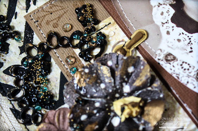 - мы научимся работать с медиумами, масками, красками, а также расставлять самые мелкие акценты, такие как топпинг, глиттер, дотсы, дропсы, бисер, бульйонки, песок, и т.п.