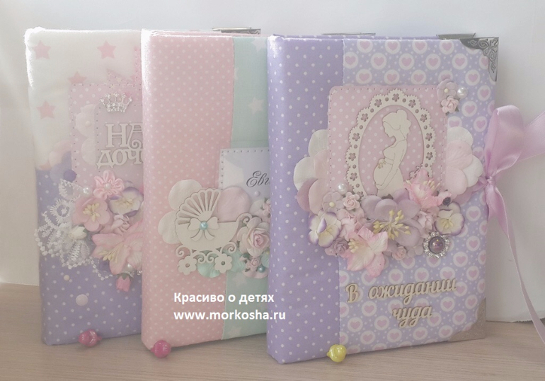 Мамины блокноты от 0 месяцев до 6 лет с местом для примерно 40 фотографий 10х15см, в фотоальбомы можно уместить до 160 фотографий + таблички-наблюдения или страницы для записей. Формат А5, всё сделано с нуля.