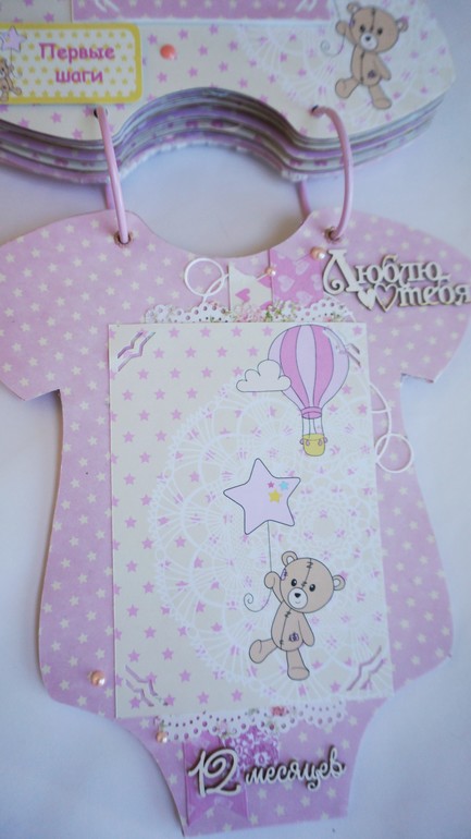 Альбомы ДетскиеВсем доброго дня! К сожалению, красиво фотографировать я не умею, да и скрапбукингу только учусь, но все-таки покажу альбом-бодик, который сотворила для нашей любимой малышки из коллекции бумаги Mona Design (влюбилась в неё с первого взгляда). С особым трепетом и нежностью буду хранить в нем самые трогательные фотографии первого годика нашей доченьки.