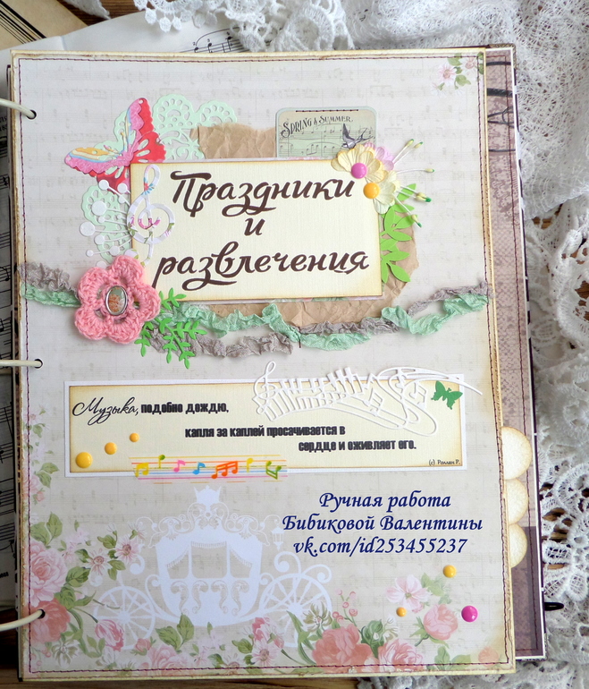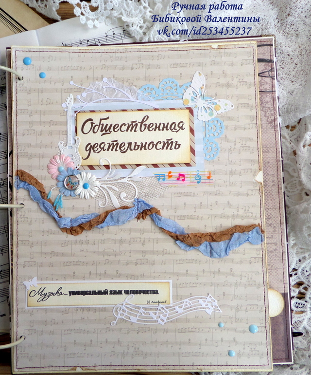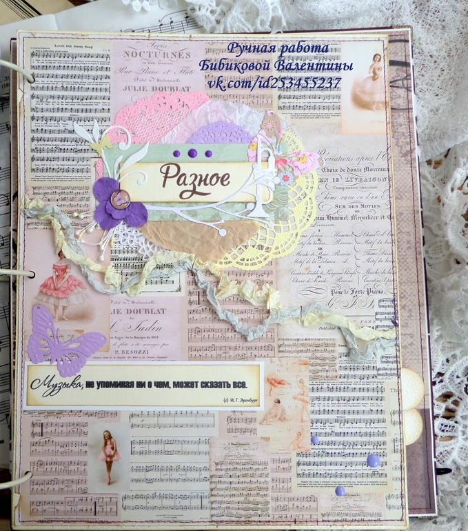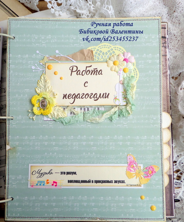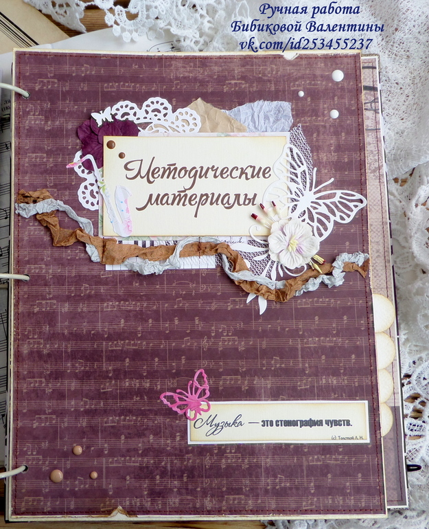 Обязательным условием были бабочки, цветочки и нотные знаки. Фото на обложку нужно было сделать нарисованным)) Файлы со всякими нужностями она вставит сама, моя задача была сделать обложку и разделители) Прошу к просмотру)
