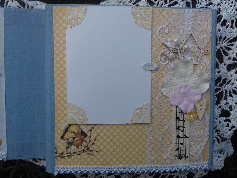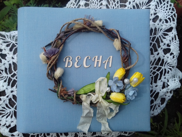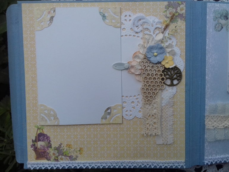 Сам процесс создания мне ОЧЕНЬ понравился. Всё легко и довольно просто. Хотя косяки были) просто хотелось побыстрее всё сделать, ну и тут начинают вылезать всякие ошибочки) Сделался этот альбом еще в мае, но никак не могла его отфотографировать...поэтому весенний альбом показываю вам летом) хотя разве это лето??? Этот альбом предназначается для моей мамы, и там будут фото с нашей поездки к ней в мае. Итак, немного данных: размер 16*16, вмещает 24 фото размера 5*7,5 (половинки 10*15). Теперь смотрим!