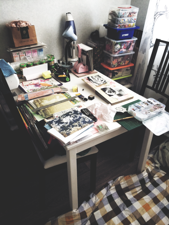 Я скраплю на кухне, на обеденном столе. Там же, где и спит мой муж) на полу))
