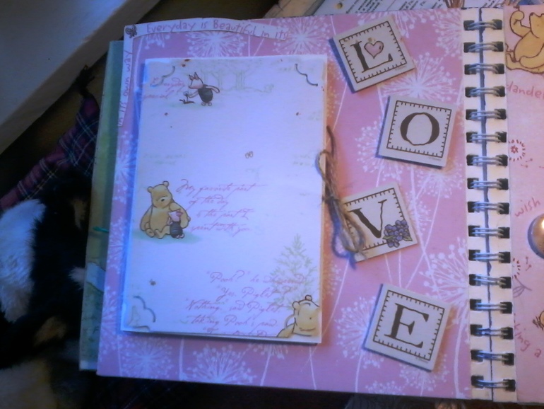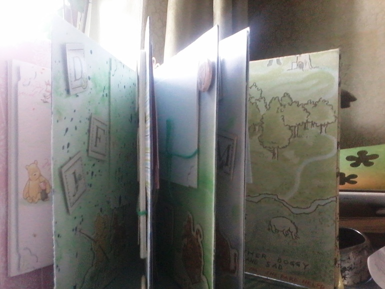 А какое слово важное Винни написал? О любви мишка размечтался-о мёде, сладком, липовом мёде, а может и не только о нём... Раскладка-книжка 7 фото подложек