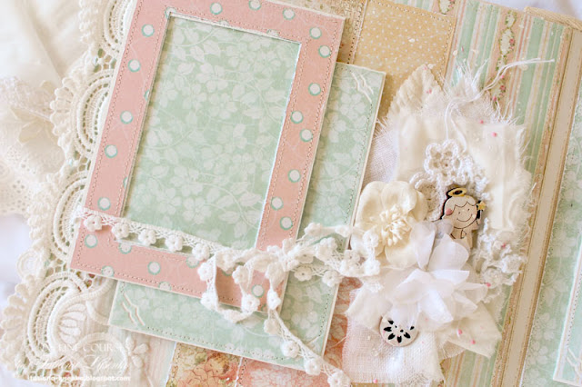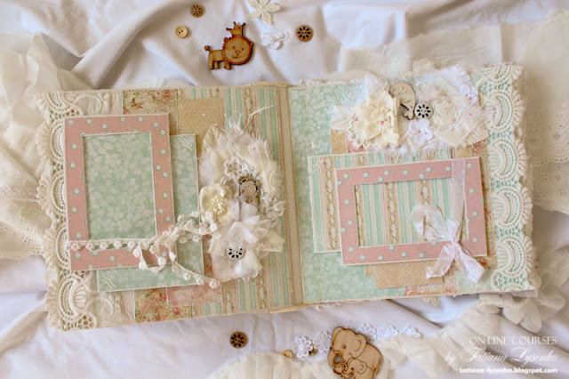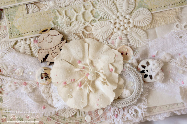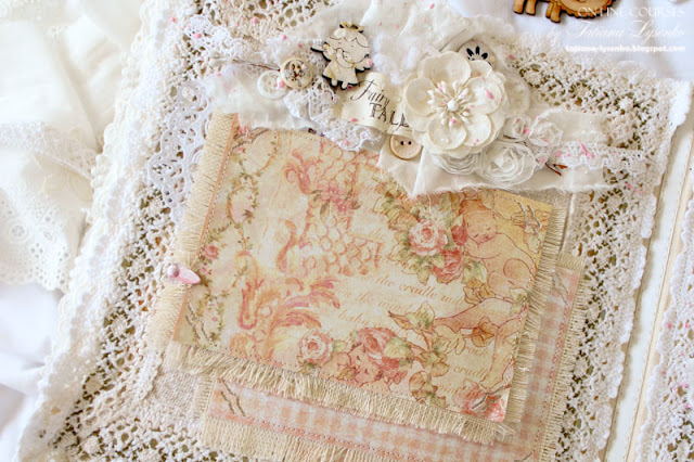 В основе лежит коллекция Baby to bride. Невероятно нежные и незаурядные принты дают возможность высокому полету нашей задумки воплотиться в жизнь. Рассказывать о качестве данной ТМ мне кажется будет лишним поскольку уже наверное все знают об ее уникальных коллекциях, о высокой плотности...о том, как хорошо она ведет себя с любыс клеем, о приятном запахе, о безупречной биговке.