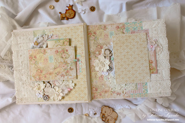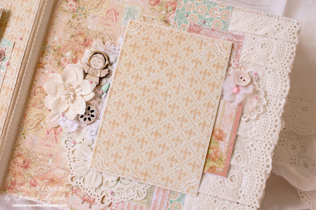 Когда Вера озвучила мне задание для предстоящей публикации, я очень обрадовалась, поскольку как раз в тот период начинала работу над нежным и воздушным фотоальбомом для своего будущего он-лайн курса "Нежнее нежного". В его основе лежит несравненная бумага TM Graphic45, которой и посвящены оды сегодняшнего поста ЧБ Memuaris.