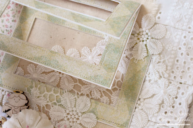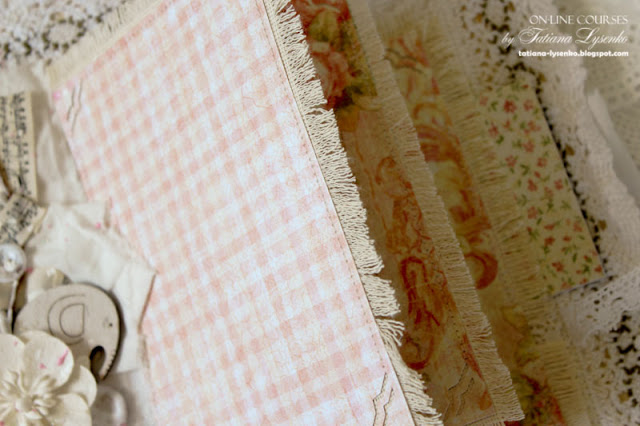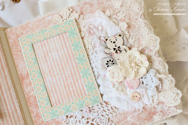 Пятый, текстильный разворот и четвертый вариант рамочек для фото