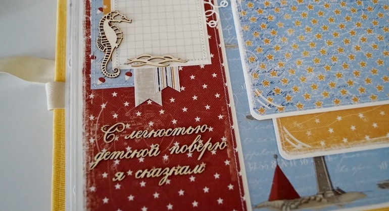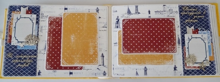 ну да не буду о грустном)) Итак альбом... перед его созданием мною были получены следующие вводные: альбом на 60 фото для не юной семейной пары, любящей Красное море, а особенно его подводный мир)) С бумагой определилась почти сразу, это неподражаемая maja design. к ней на заказ разработали тэги для записей. Потом нашла очень красивый стих о Красном море,и воплотила его в чипборде))) Вместит альбом 63 фото, плюс три больших кармана для памятных билетиков и пр..а еще мне альбом изначально виделся в чемодане! ведь любой отпуск начинается именно с него)) да к тому же заказчица - моя любимая и это для нее приятный, надеюсь, бонус, вот и родилась коробка для хранения. которая по моей задумке должна имитировать чемодан (хотя в процессе я трижды решала плюнуть и не делать ее)))