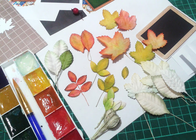 Красила обычной акварелью, когда слегка подсохли - придала листочкам форму и досушила на батареи.